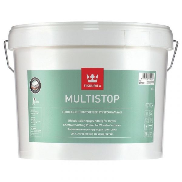 • Multistop torjuu oksakohtien ja muiden tummentumien läpilyönnit sekä peittää vanhan ja kellastuneen puupinnan.