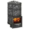 Lisävarusteet: Kiuaskivet, tulisijan suojaseinä ja -alusta, teräspiippupaketti, savuputket.